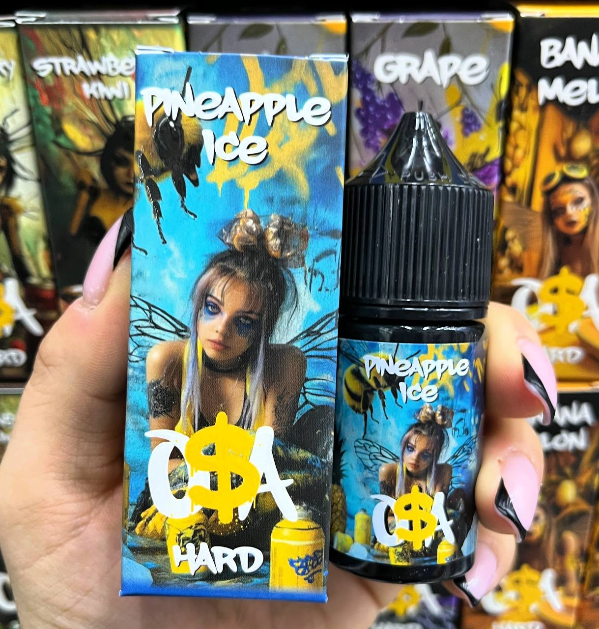 Вкусы: 1.Grape 2.Strawberry kiwi 3.Banana melon 4.Pineapple ice 5.Mango peach