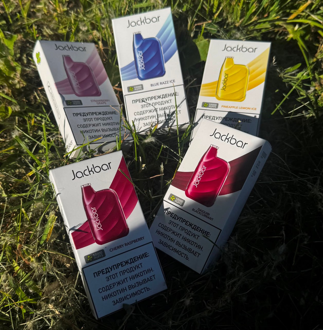 Jackbar 10000 - 10000 затяжек Вкусы: Черника-лайм-клубника Голубая малина-холодок Виноград-холодок Микс ягод Ананас-лимон-холодок Арбуз-холодок Дайкири - Чёрная смородина Тёмная вишня-арбуз Банан-мята Клубника-банан Сочный персик Вишня-малина-дыня Киви Ви